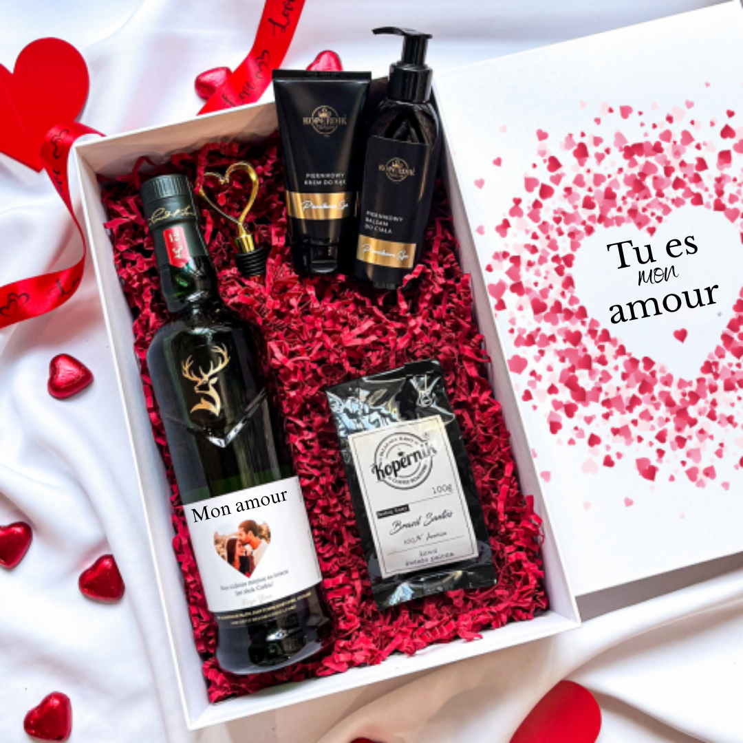 Offrez à l'être cher un cadeau luxueux qui allie élégance, expériences aromatiques et moments de détente. Ce coffret exceptionnel comprend un whisky Glenfiddich 12 ans doté d'une étiquette personnalisée avec votre photo, un café premium soigneusement sélectionné ainsi qu'un kit de soins pour les mains et le corps. C'est l'alliance parfaite pour les amateurs de saveurs raffinées et de relaxation. Une idée cadeau idéale dla koneserów whisky i miłośników relaksu. Commandez dès aujourd'hui et offrez un moment de plaisir unique !